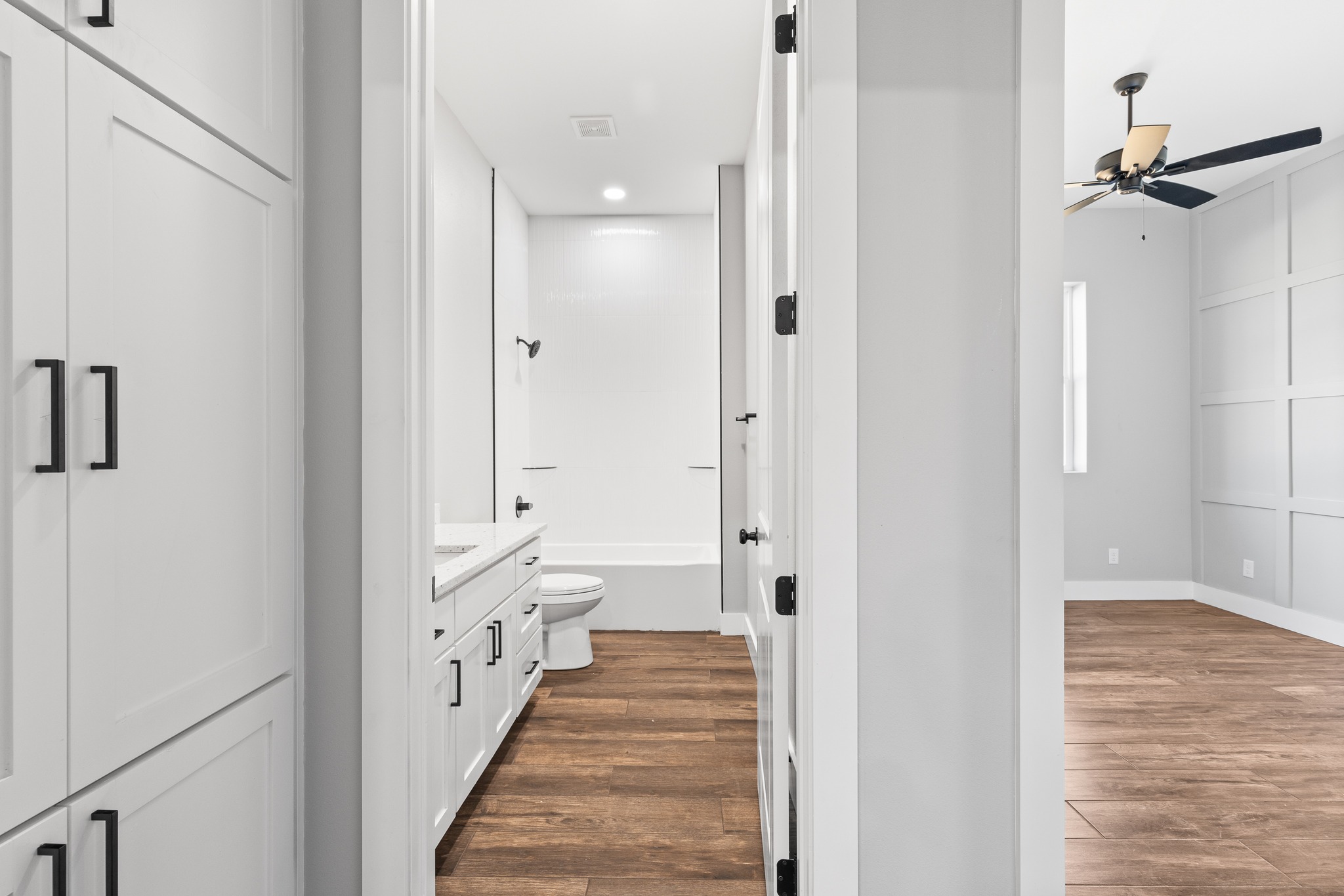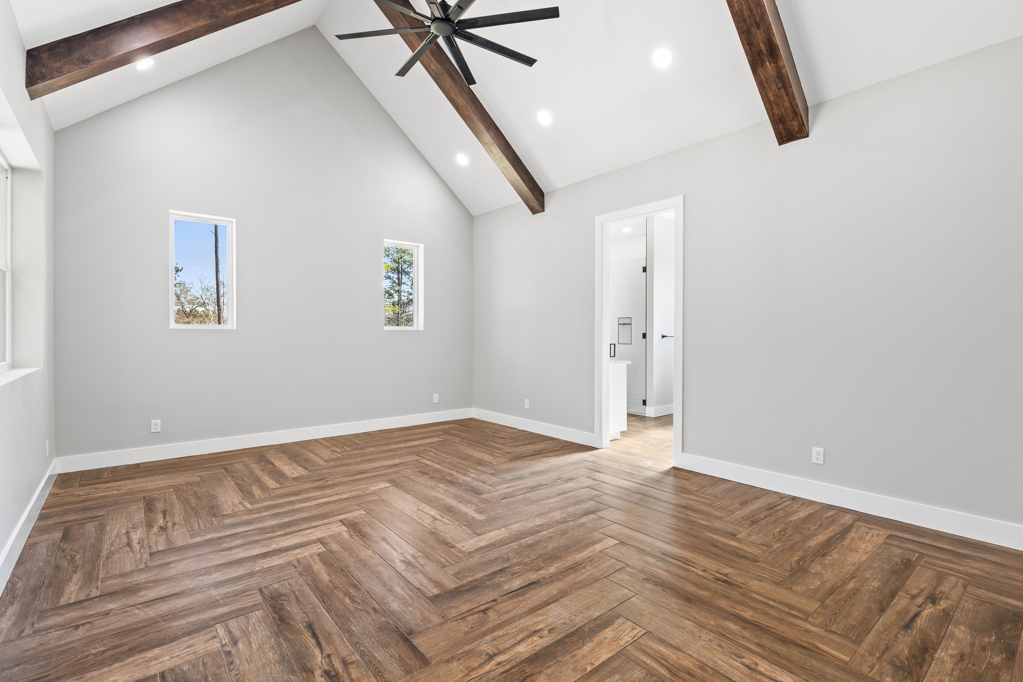 Welcome to your opportunity to own & live in the newest neighborhood. What a wonderful place to call home in the sought after & highly acclaimed Hallsville school district. This home is sure to leave an impression at every turn. Foyer details with high ceilings that take you flowing past a casual dining room & generous great room that overlook a desirable covered patio space. Well designed kitchen is equipped with large center island with space for additional seating. Secluded primary bedroom suite is highlighted by a beautiful & dramatic cathedral ceiling with wood beams, enormous walk in closet, spa like primary bath with dual sink & vanity space, luxe glass enclosed shower, soaking tub, & private water closet. Well appointed laundry space with room for storage that lead into mudroom with so much additional storage. Secondary bedrooms feature generous walk in closets & shared access to a full Jack & Jill bathroom. 4th Bedroom or potential offices pace has incredible millwork detail & walk in closet with access to private full bath. Oversized garage with additional storage. This home offers open concept & so many thoughtful design aspects & is situated on over an acre in a very desirable location. Seconds from all the amenities but in a quiet budding neighborhood is the best of both worlds.